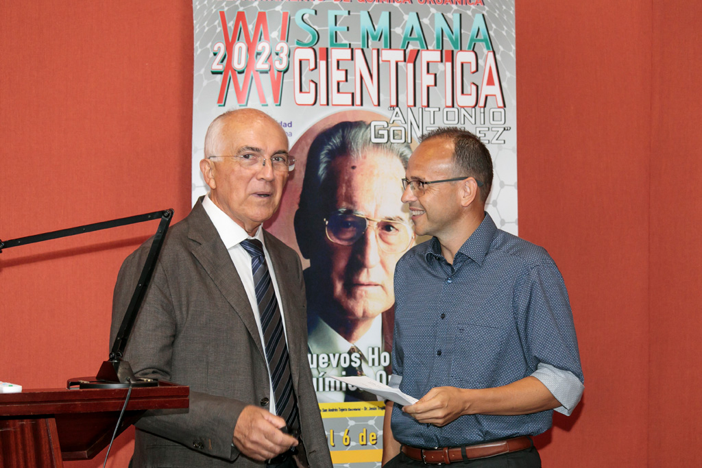 La Semana Científica Antonio González, que cada año organiza el Departamento de Química Orgánica de la Universidad de La Laguna con el salón de actos del Instituto de Bio-Orgánica Antonio González (IUBO) como sede, ha inaugurado hoy, martes 3 de octubre, una vigésimo quinta edición que certifica la consolidación de un evento científico con un doble objetivo: traer a la institución tinerfeña a los mejores especialistas nacionales en química orgánica y servir como foro de presentación para jóvenes investigadores locales sobre esta materia.