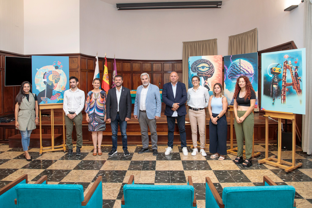 Durante el acto también fue presentado el cartel anunciador de esta edición de los cursos, que este año ha sido concebida de una manera especial: se invitó a cuatro artistas de Adeje (Oriol Cruz, Alba González, Aída Cecilia Hernández y Aída Díaz) a crear otras tantas imágenes utilizando como herramienta la inteligencia artificial. Los resultados fueron puestos en exposición pública para que una votación a través de Internet eligiera el ganador, que finalmente fue el diseño concebido por Oriol Cruz.