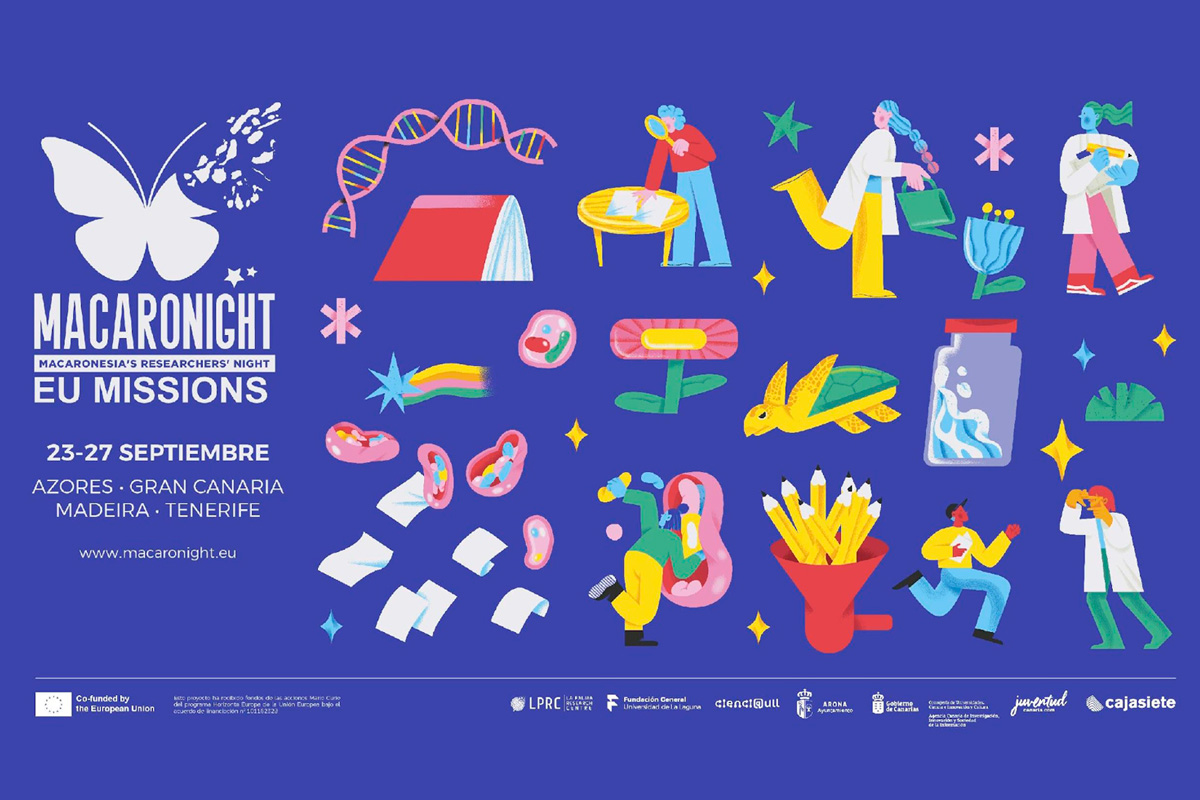 Esta semana ha comenzado el programa de actividades de la Noche Europea de los Investigadores e Investigadoras de la Macaronesia (MacaroNight) en Tenerife, organizado por la Universidad de La Laguna, a través de Cienci@ULL, el Ayuntamiento de Arona, CajaSiete y cerca de un centenar de investigadores e investigadoras de la Universidad de La Laguna y centros de I+D asociados.
