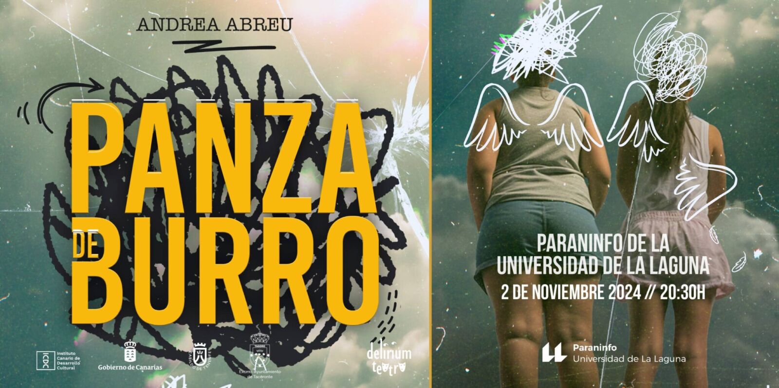 La compañía Delirium Teatro presentará el próximo sábado, 2 de noviembre a las 20:30 horas en el Paraninfo de la Universidad de La Laguna, su adaptación dramática de la novela de Andrea Abreu “Panza de burro”. Las entradas están disponibles en la plataforma Ecoentradas a partir de 11 euros.