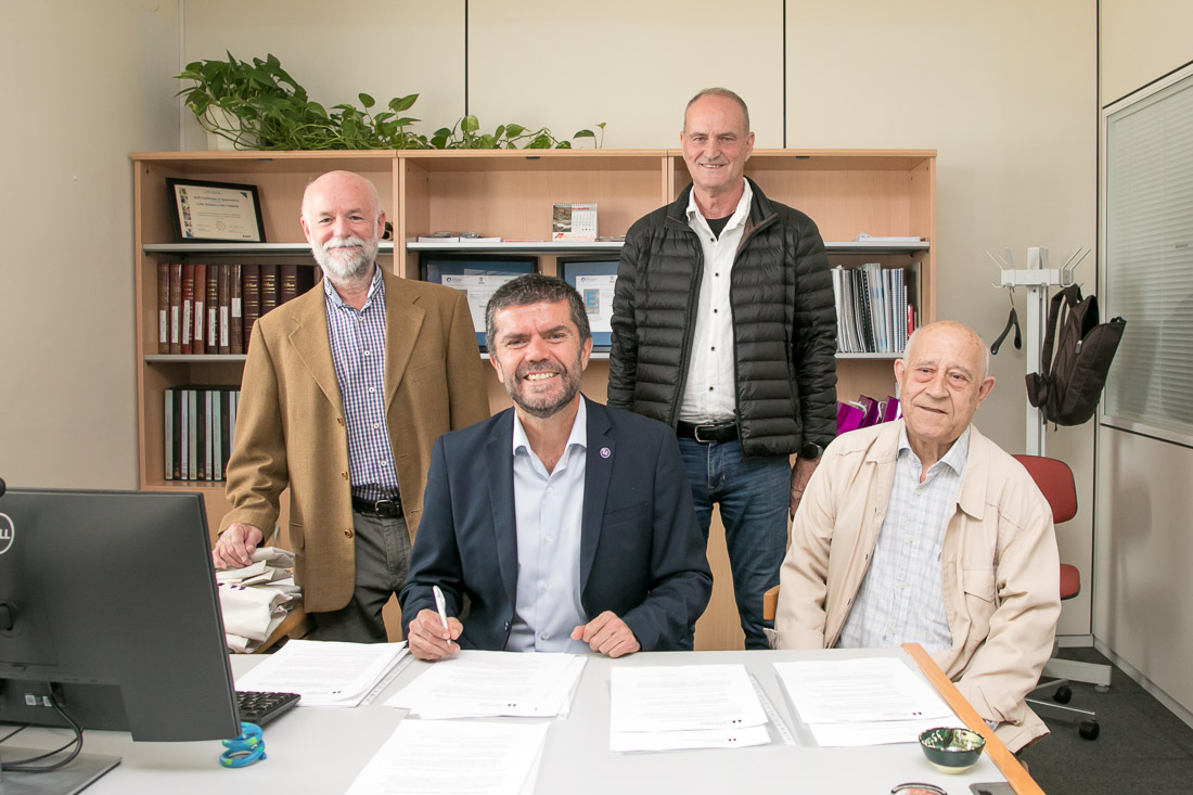 El rector junto a los tres donantes: Luis Ortigosa, Sergio Millares y, sentado, José Luis Escohotado.