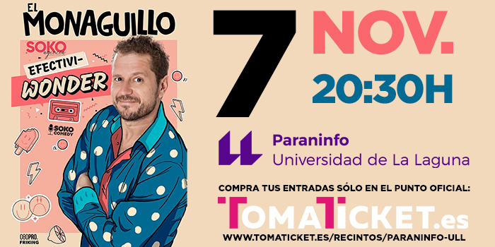 El Monaguillo es el apodo del humorista marbellí Sergio Fernández, quien saltó a la fama por sus monólogos en El Club de la Comedia y por su espacio dentro del programa El Hormiguero. El también presentador visitará mañana jueves 7 de noviembre el Paraninfo de la Universidad de La Laguna a las 20.30 horas con su espectáculo ‘Efectiviwonder’, con entradas disponibles en Tomaticket a 22 euros.