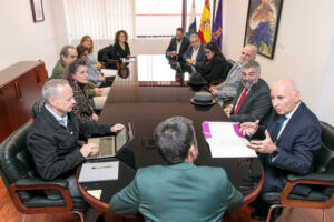 El rector, de espaldas, conversa con el decano de Ciencias de la Salud.