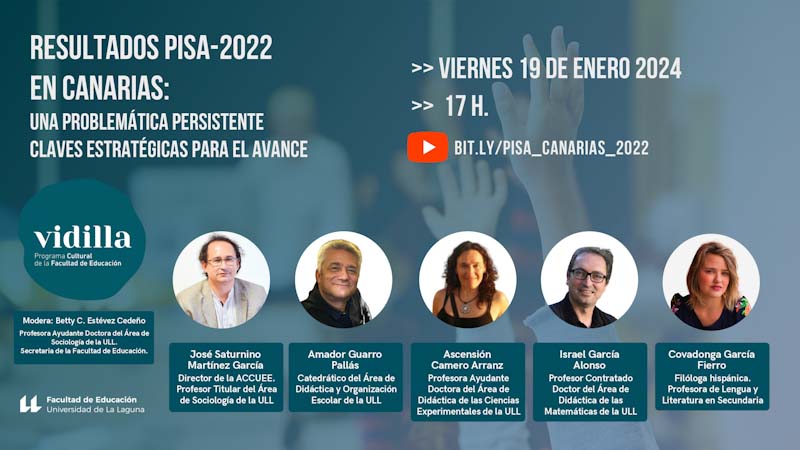 El programa cultural Vidilla de la Facultad de Educación comienza 2024 con un coloquio en torno a los polémicos resultados del alumnado canario de la ESO en la última evaluación PISA de 2022. Estos resultados han suscitado un considerable revuelo, que ha arrojado dudas sobre la calidad de la educación en Canarias y sus posibles causas.