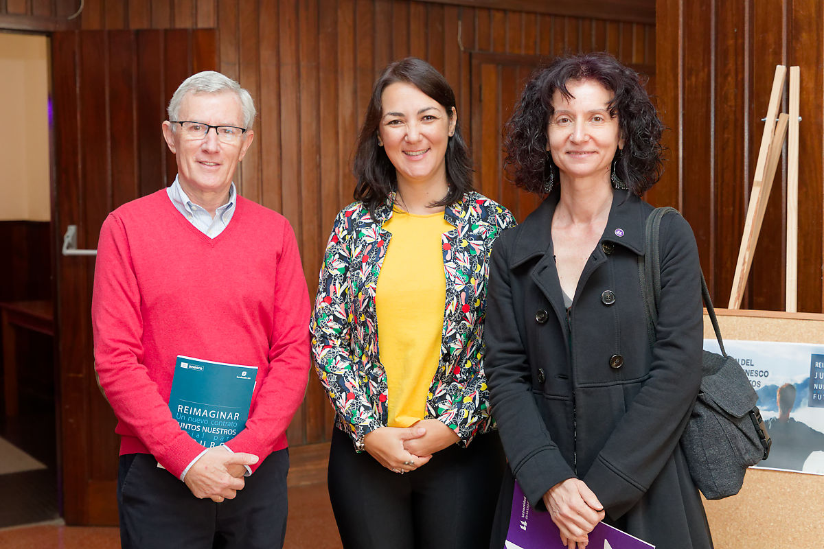José María González (Fundación SM), Itahísa Pérez (Facultad de Educación) y Rosario Hernández (vicerrectora de Estudiantes).