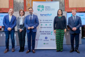 Foto cedida. (De izq. a der.) Eduardo Parra, profesor de la ULL; Candela García, vicerrectora de de Sostenibilidad e Infraestructuras de la ULL; Lope Afonso, vicepresidente del Cabildo de Tenerife; Dimple Melwani, consejera delegada de Turismo de Tenerife; y Dmitriy Ilin, coordinador técnico del departamento de Miembros Afiliados de la OMT.