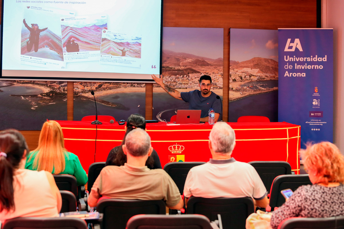 Héctor Reyes, concejal de Educación del Ayuntamiento de Arona, destacó que con la finalización del último curso ‘Nuestra Vida en las Pantallas’, se dio por concluida y clausurada la Universidad de Invierno de Arona, una iniciativa que cada vez va adquiriendo más protagonismo, afianzándose así en el municipio. «La Universidad de Invierno que trae a la Universidad de La Laguna a Arona para darnos formación en temas demandados, en temas de actualidad y de interés y que están dirigidos a todas las personas interesadas en la formación», sentenció.