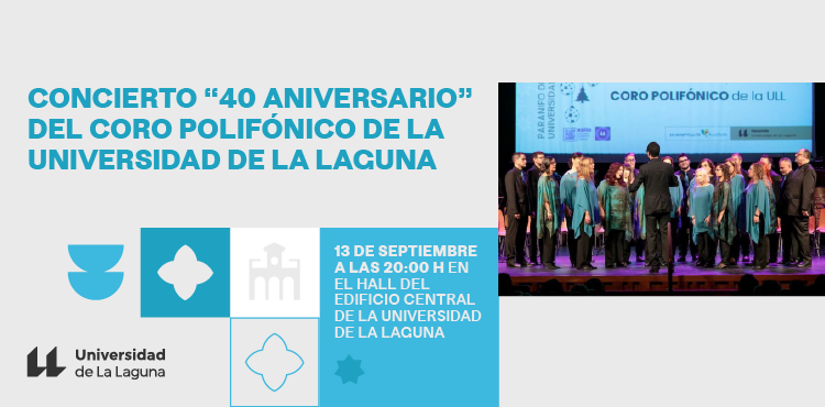 El Coro Polifónico de la Universidad de La Laguna cierra mañana 13 de septiembre la celebración de su 40 aniversario con un concierto en el vestíbulo del Edificio Central, a partir de las 20 horas. Se trata de un espacio interior, que da a la escalinata principal, pero en el que no suele ser habitual este tipo de espectáculos. En este recital la formación coral realizará un recorrido por algunas de las obras más emblemáticas de esta última década en las que el coro está dirigido por Julio Chinea.  Musicales, folklore vasco, tangos y habaneras resonarán así en el vestíbulo del inmueble universitario.