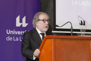 El rector valoró ese trabajo continuado a lo largo de muchos años en esta empresa pública. “Y ese esfuerzo resulta especialmente necesario en los tiempos que corren, caracterizados por el desarrollo del relativismo moral, la confusión entre libertad y ultraliberalismo, el cuestionamiento de la ciencia o la proliferación, con el apoyo, permisividad o connivencia de ciertos poderes públicos, de una oferta privada de educación superior que no respeta unos mínimos criterios de calidad”.