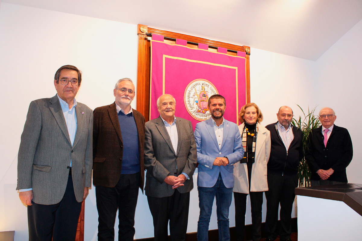 De izquierda a derecha, Antonio Martinón, José Gómez, José Carlos Albertos, el actual rector Francisco García, Marisa Tejedor, Ángel Gutiérrez y Eduardo Doménech.
