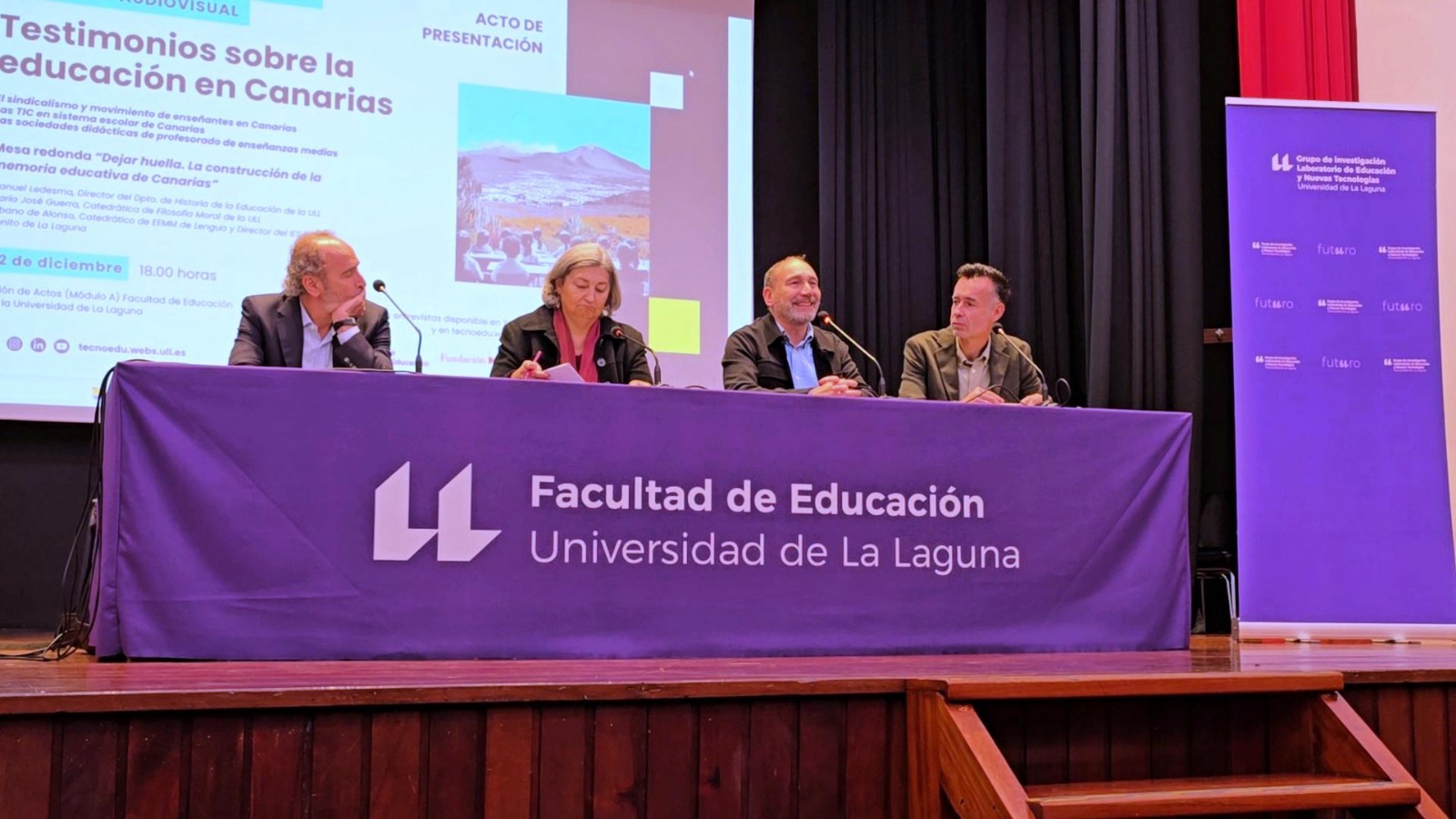 El pasado jueves se presentó en la Facultad de Educación de la Universidad de La Laguna la colección audiovisual de entrevistas a distintos protagonistas que han impulsado el desarrollo de la Educación en Canarias en los últimos cuarenta años. Esta colección está impulsada por la Cátedra de Tecnología y Educación TECNOEDU de la Fundación Mapfre Canarias y el propio centro académico.