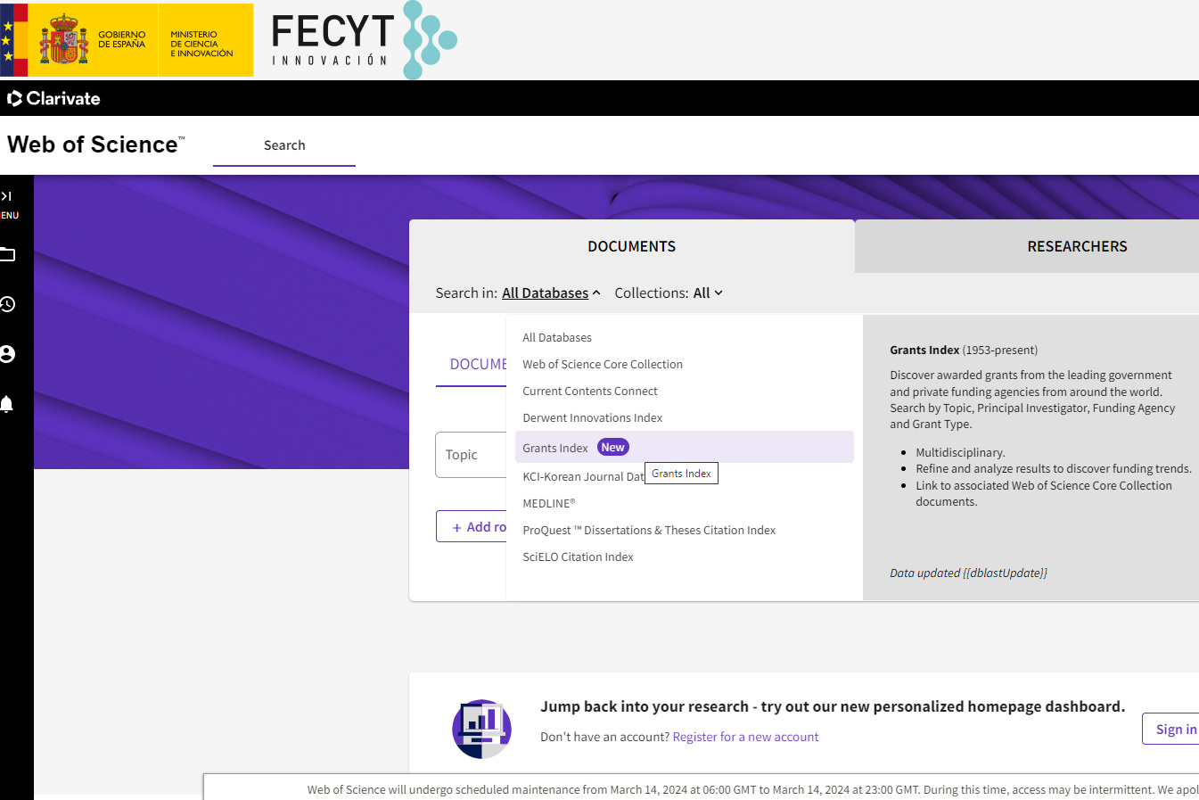 Título: Presentamos el nuevo Grants Index en la plataforma Web of Science