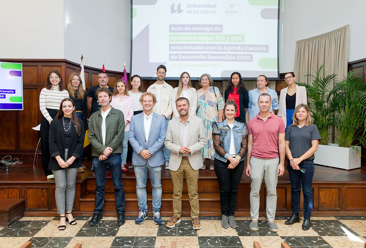 La Universidad de La Laguna, bajo la organización de la consultoría Plan B Group, entregó ayer, 11 de noviembre, los premios a mejor Trabajo de Fin de Grado (TFG) y Trabajo de Fin de Máster (TFM) relacionados con la Agenda Canaria de Desarrollo Sostenible 2030, un galardón que se otorga por tercera vez al alumnado de la institución educativa. Esta convocatoria es fruto del compromiso de ambas entidades por impulsar la investigación académica que, alineada con los Objetivos de Desarrollo Sostenible, proponga soluciones innovadoras a los retos y prioridades de actuación de Canarias.