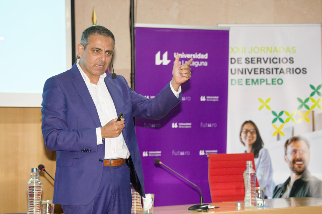 Más de 120 personas de unas 50 instituciones académicas españolas públicas y privadas están reunidas en la Universidad de Laguna desde la tarde de ayer, miércoles 19, hasta el viernes 21, para abordar los principales desafíos a los que se enfrentan los servicios de empleo vinculados a los centros de educación superior. Así, se abordarán cuestiones como las demandas del mundo de la empresa, los cambios en el empelo vinculados a la tecnología y la conectividad, las competencias profesionales, el emprendimiento e, incluso, la irrupción de la inteligencia artificial en el ámbito laboral, que fue el asunto de la conferencia inaugural impartida por el catedrático de Organización de Empresas de la Universidad de Las Palmas de Gran Canaria Jacques Bulchand.