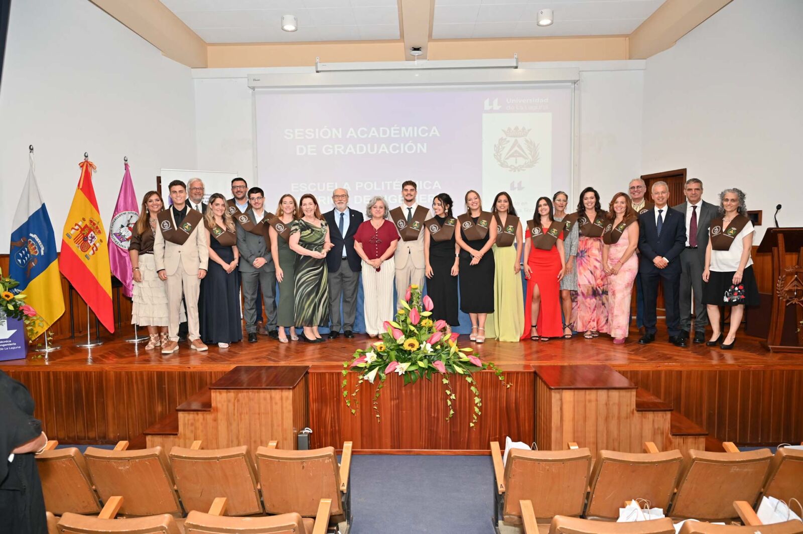 La Escuela Politécnica Superior de Ingeniería de la Universidad de La Laguna celebró recientemente su acto de graduación de la XII Promoción del Grado de Arquitectura Técnica, presidiendo el mismo la Vicerrectora de Sostenibilidad e Infraestructuras de la Universidad de La Laguna, Marta María Domínguez Herrera, acompañada de la comitiva académica.