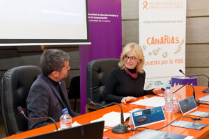 El rector de la ULL y la consejera de Sanidad, en la presentación de las jornadas.