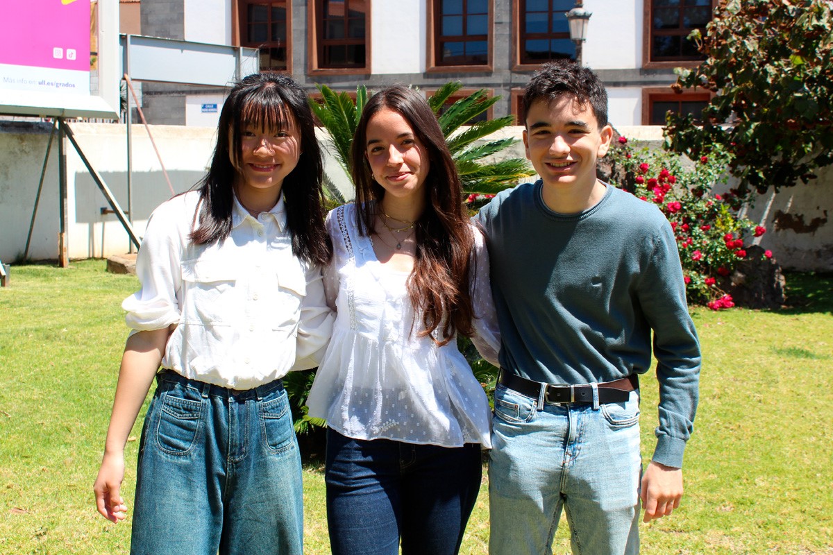 Alba Cabrera, del IES Villalba Hervás, Mario Rodríguez, del Liceo Francés Internacional de Tenerife, y Jia Ye Jiang Zhen, del IES Tías de Lanzarote, visitaron, acompañados de sus respectivos profesores, el Rectorado de la institución académica donde se les agasajó tras los buenos resultados cosechados en esta competición que reúne a alumnado de secundaria de todo el país.
