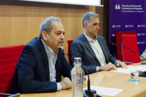 José Manuel Fraga, vicerrector de Docencia, y Gustavo Marrero, director de la Escuela de Doctorado y Estudios de Posgrado.