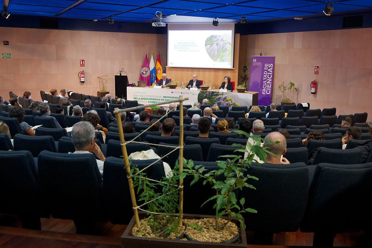 La Universidad de La Laguna y la Consejería de Transición Ecológica y de Energía del Gobierno de Canarias han inaugurado hoy, jueves 6 de noviembre, las jornadas “Por una estrategia de restauración de la biodiversidad en Canarias en tiempos de cambio climático”, un encuentro que reúne durante dos días a personal investigador y técnico, responsables institucionales y estudiantado con el objetivo de compartir y debatir estrategias para la recuperación de los ecosistemas del archipiélago.