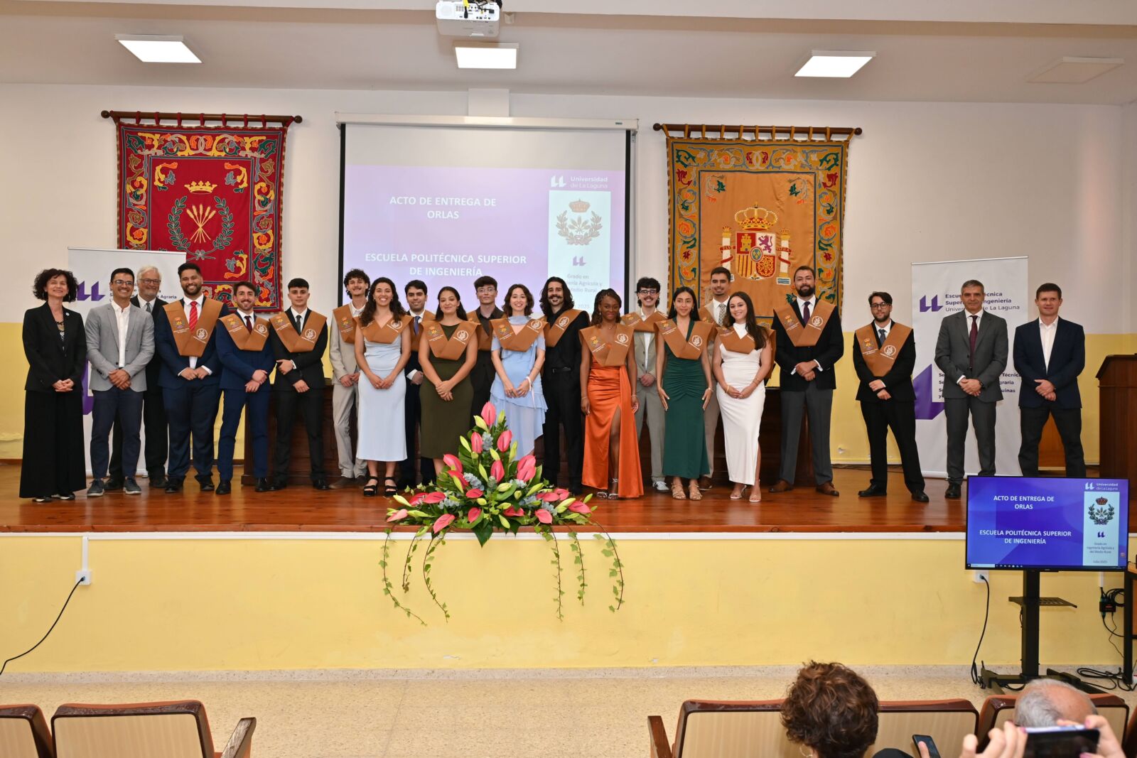 La Vicerrectora de Estudiantes de la Universidad de La Laguna, María Rosario Hernández Borges, presidió recientemente el acto de entrega de Orlas a la XII Promoción de la Sección de Ingeniería Agraria de la Escuela Politécnica Superior de Ingeniería. El acto, que tuvo lugar en el salón de actos de la titulación, comenzó con la entrada de la comitiva académica, formada por los alumnos, el padrino de la promoción y el subdirector de la sección, seguidos por el secretario y el director de la Escuela y cerrando la misma la Vicerrectora.