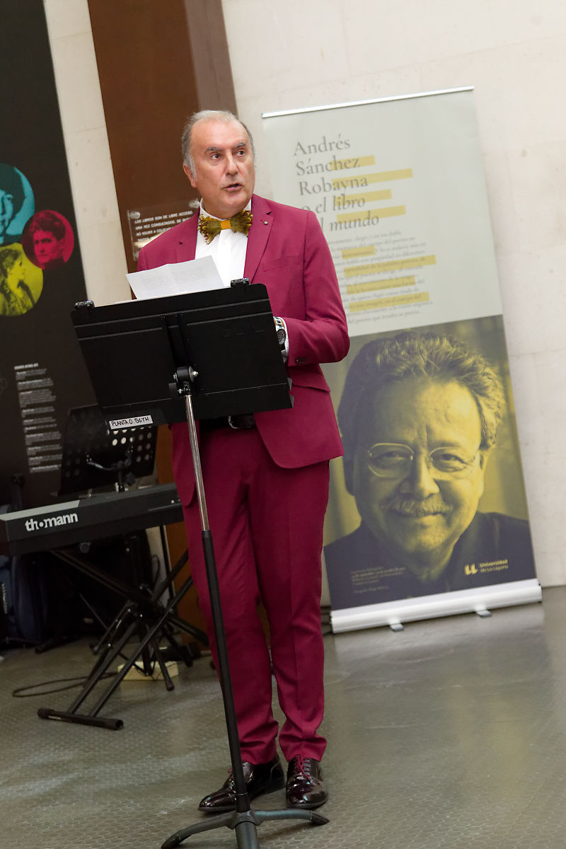 Para el rector, contar con una exposición tan completa y ambiciosa es un ejemplo “de la riqueza de la universidad pública”, pues permite el raro privilegio de mostrar la obra integral de toda una vida en su conjunto. García también apreció que este acto inaugural supuso un ejemplo claro de que Sánchez Robayna fue un auténtico maestro, pues en la sala estaba abarrotada por varios de sus ex alumnos, muchos de ellos y ellas ahora también docentes, que se acercaron al recinto universitario para reconocer la valía de su quien fuera su mentor.
