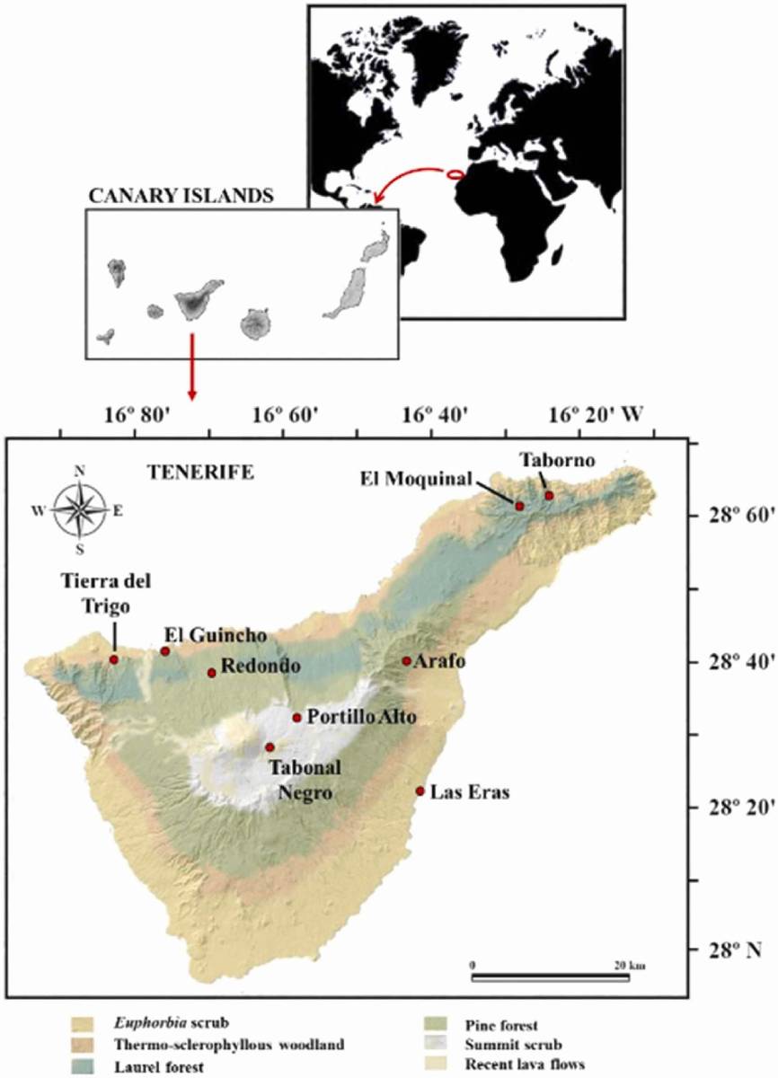 Tenerife en particular, gracias a su historia climática y natural, su marcado gradiente altitudinal y la diversidad de subclimas y flora, supone un escenario ideal para desarrollar modelos que ayuden a entender el impacto potencial del cambio climático sobre la capacidad de absorción de carbono en las comunidades vegetales mediterráneas. El objetivo del estudio fue aprovechar estas condiciones para crear un modelo empírico que estimara la tasa de asimilación neta de CO₂ a partir de variables ambientales clave (radiación solar, temperatura, humedad relativa y estado hídrico del suelo) en especies nativas distribuidas desde las costas áridas hasta la alta montaña.