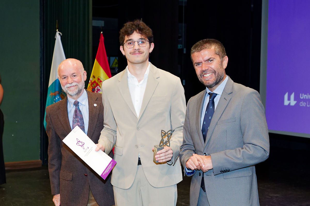 La primera parte de la gala estuvo centrada en la entrega de galardones convocados por la asociación Alumni ULL. El premio al Mejor Expediente Académico del curso 2023-24, dotado con 1.000 euros, recayó en Nelson Rivas Chacón.
