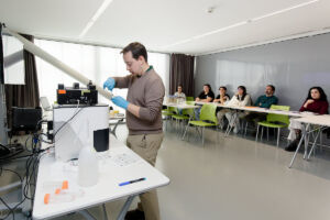 En este caso concreto, se centró en las técnicas de análisis de exosomas, nanovesículas, nanopartículas y nanoplásticos disponibles en la Universidad de La Laguna, contando con ponentes que utilizan técnicas innovadoras y disruptivas, tales como TEM en fase liquida y medidas de nanomateriales en el sincrotrón. También hubo espacio para la demostración, el miércoles 19, de dos equipos de la empresa IESMAT centrados en el análisis de nanomateriales: Nanosight Pro (NTA) y Zetasizer Advance (DLS).