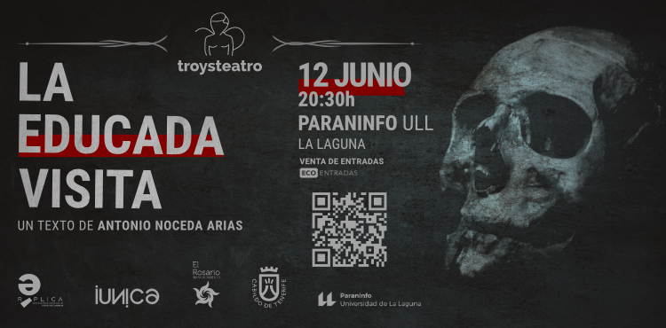 El Paraninfo de la Universidad de La Laguna acoge hoy, jueves 12 de junio, a las 20:30 horas, la representación teatral ‘La educada visita’ de la compañía canaria Troysteatro. Escrita por Antonio Noceda y dirigida por Antonio Fumero, esta obra propone una mirada aguda y profundamente humana sobre los límites de la moralidad, enmarcada en la Francia ocupada durante la Segunda Guerra Mundial. Las localidades pueden adquirirse en Ecoentradas a partir de 10 euros.