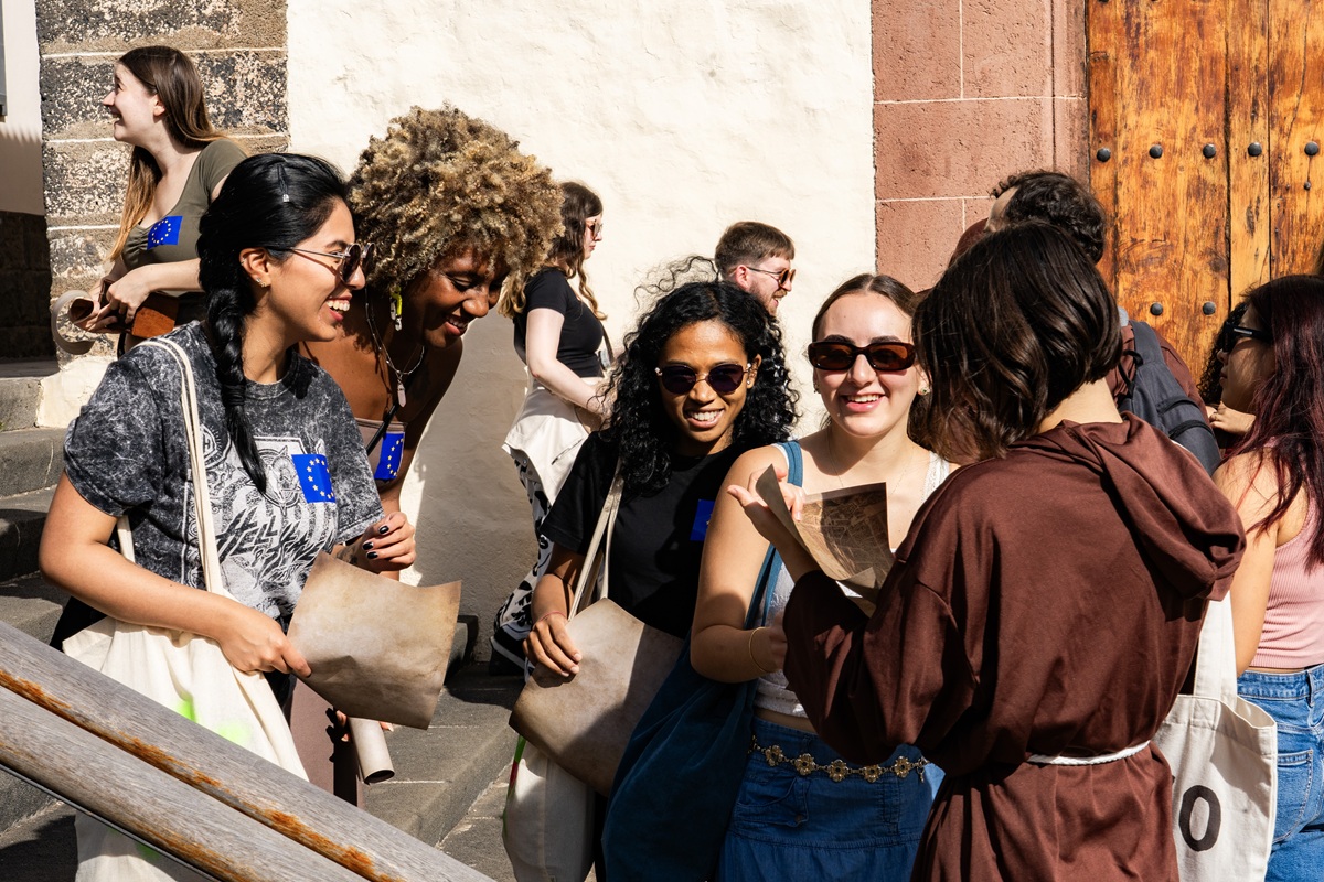 Otro de los propósitos del encuentro fue dar a conocer San Cristóbal de La Laguna al alumnado visitante, resaltando su condición de como ciudad patrimonio de la humanidad con rasgos muy particulares dada su ubicación, pero plenamente integrada en la Unión Europa. Así, la actividad consistió en un recorrido de dos horas por el casco histórico de la mano de los guías de la Asociación Cervantear, quienes combinan la información con actividades formativas y de entretenimiento.