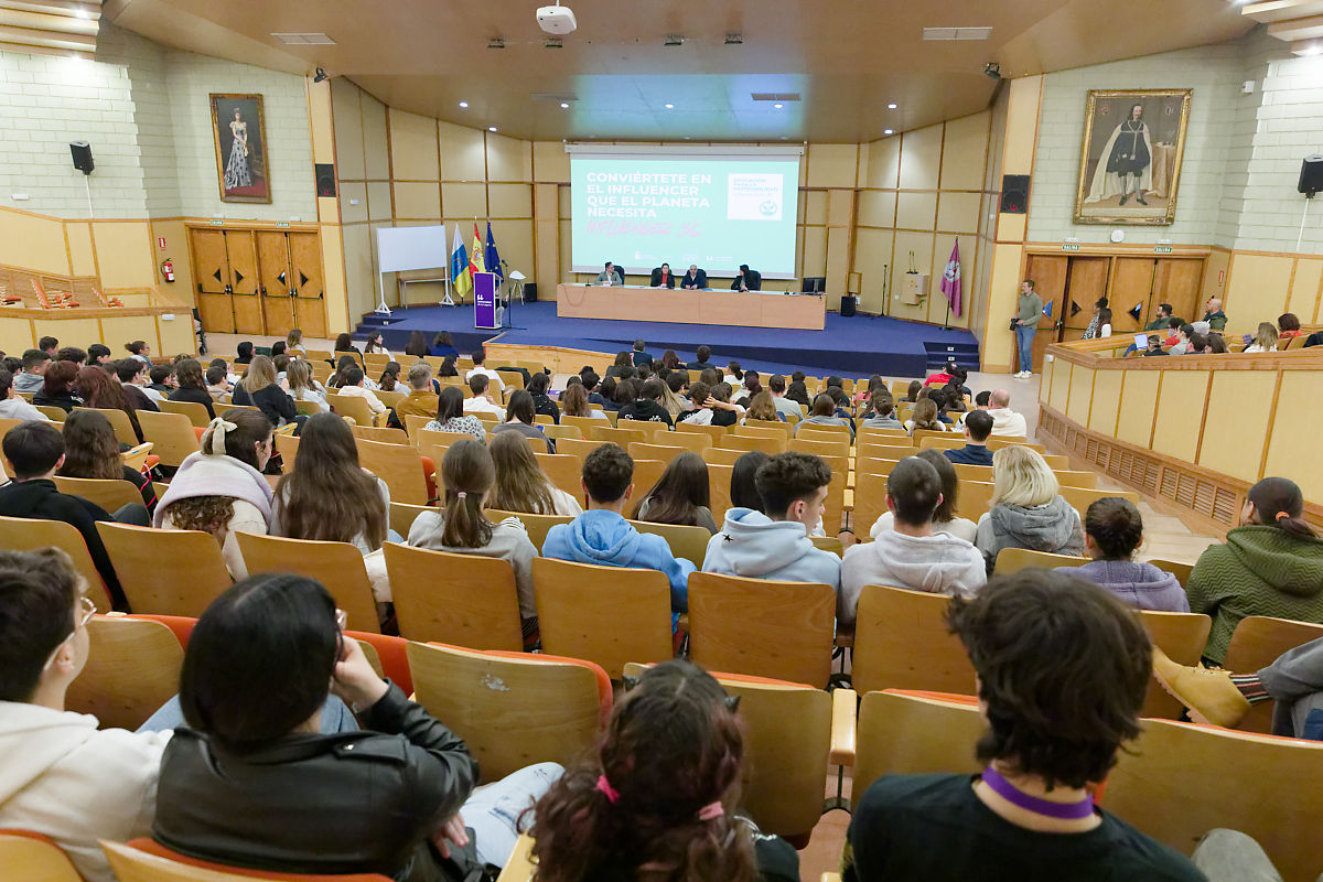 La Universidad de La Laguna y el Gobierno de Canarias pusieron en marcha un programa formativo que, bajo la denominación de “Influencers 3C por el planeta”, formó a jóvenes estudiantes y egresadas para que desarrollaran difusión en redes sociales de contenidos relacionados con los Objetivos de Desarrollo Sostenible y la Agenda Canaria 2030, de una manera cercana a las audiencias de su edad, pero sin perder rigurosidad. Hoy, martes 25 de marzo, las cinco chicas que han finalizado la programación presentaron en el Aulario César Manrique del Campus de Guajara los resultados de este programa ante 277 estudiantes venidos de varios centros tinerfeños.