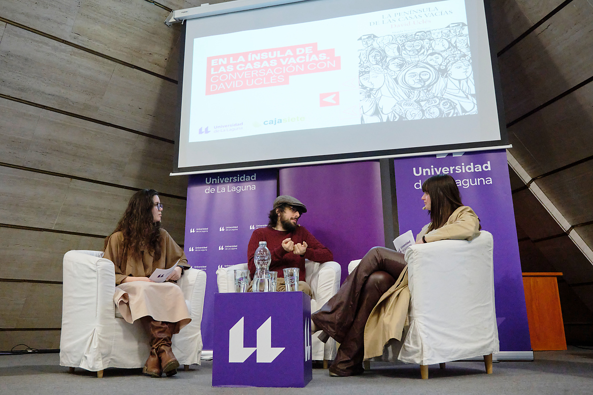 La Universidad de La Laguna ha acogido hoy, viernes 13 de marzo, el encuentro literario “En la ínsula de las casas vacías” en el Salón de Actos de la Facultad de Ciencias Sociales y de la Comunicación, una conversación con el escritor David Uclés, ganador del Premio Nadal por su novela “La península de las casas vacías”. El acto combinó literatura, memoria y representación escénica, alternando el diálogo con el autor con fragmentos teatralizados de la obra, interpretados por la Agrupación Teatral de Filología, creando un espacio donde palabra y escena se entrelazaron para explorar las heridas, recuerdos y silencios de la Guerra Civil. Sobre su visita a Tenerife, mencionó que ayer pudo ver el monumento a Franco en la capital y expresó su deseo de no volvérselo a encontrar en su próxima visita.