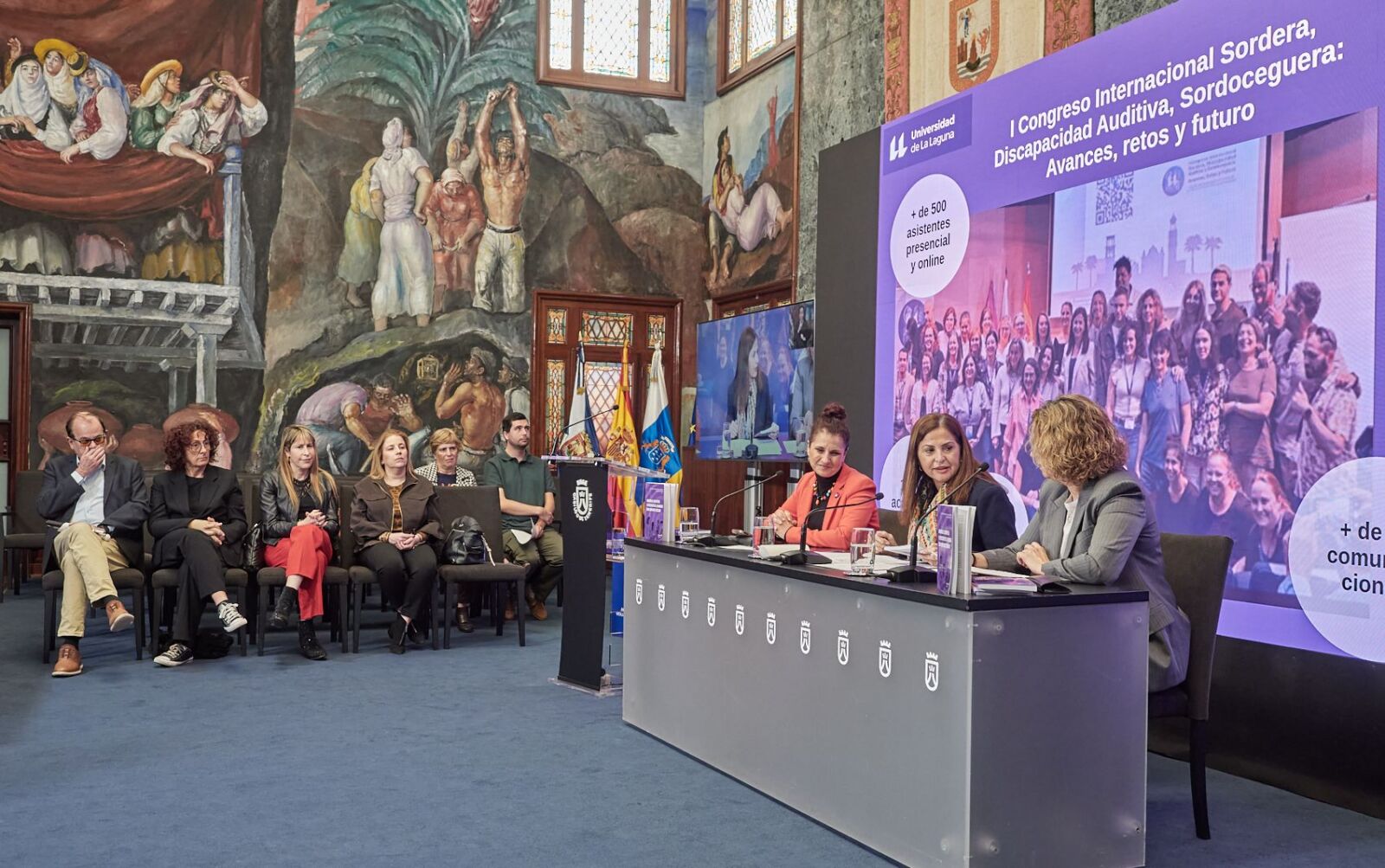 El acto puso de manifiesto la importancia de la colaboración institucional entre la Universidad de La Laguna y el Cabildo de Tenerife para seguir avanzando en investigación, innovación, formación y transferencia del conocimiento en el ámbito de la discapacidad auditiva y la accesibilidad.
