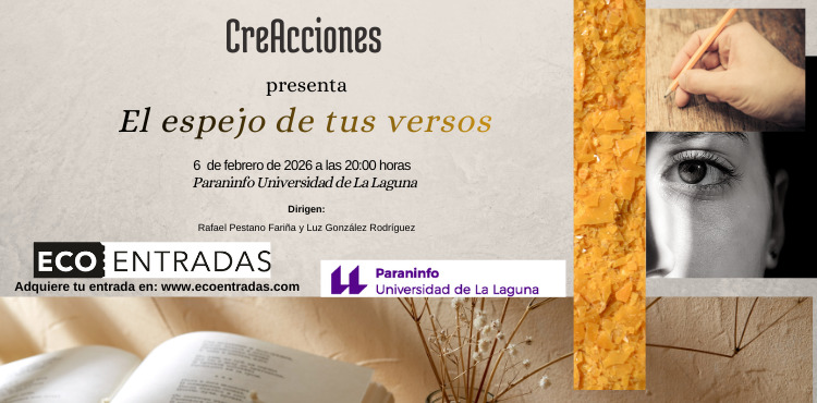 La compañía CreAcciones, dirigida por Rafael Pestano Fariña y Mª Luz González Rodríguez, representa este viernes 6 de febrero a las 20 horas el espectáculo denominado ‘El espejo de tus versos’. Se trata de una pieza teatral que reflexiona sobre los límites de la condición humana y de su futuro ligado a su propio desarrollo cultural. Las entradas ya están disponibles al precio de 10 euros para mayores de 16 años.