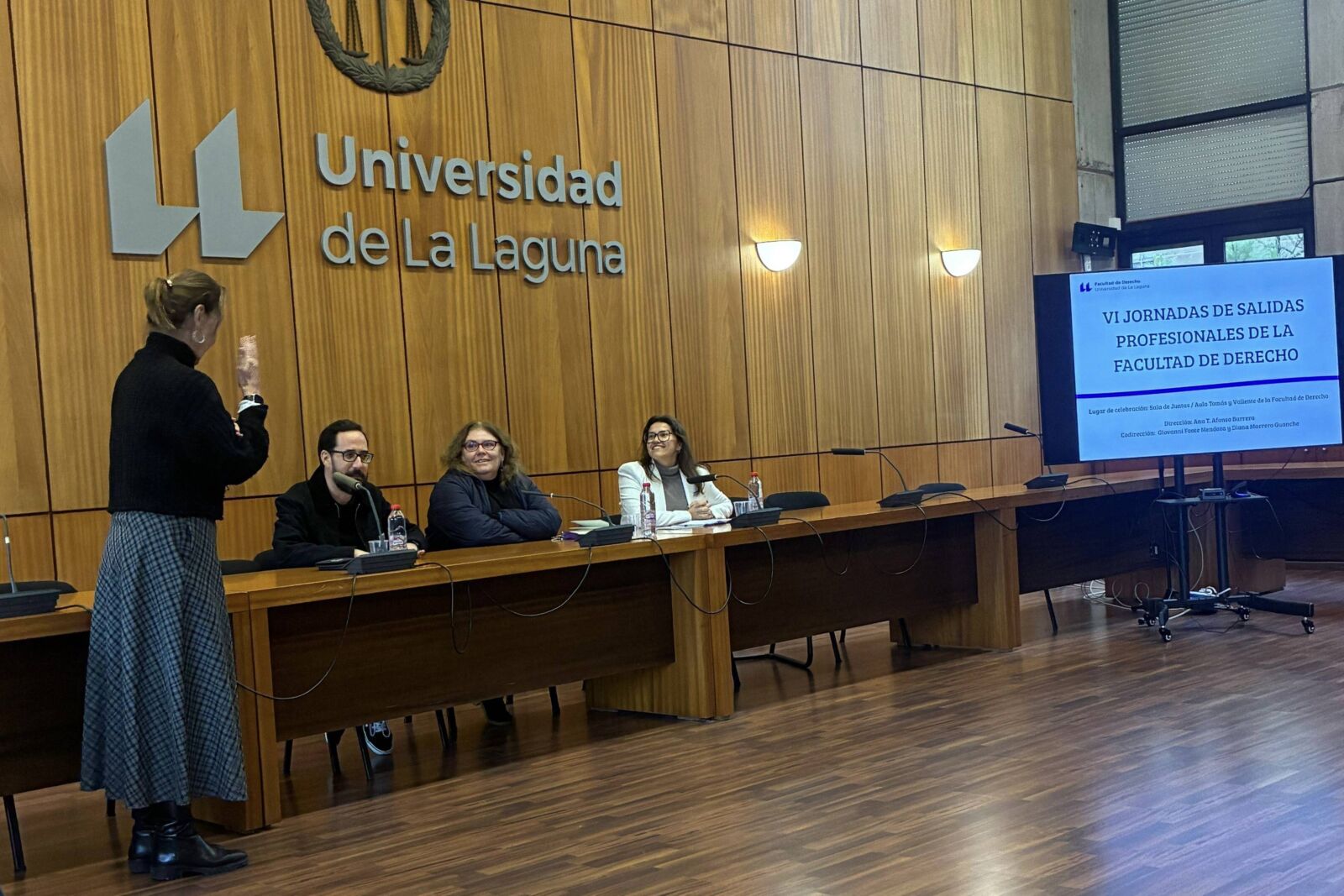 La Sala de Juntas de la Facultad de Derecho de la Universidad de La Laguna ha acogido la sexta edición de sus jornadas de salidas profesionales, que tuvieron lugar los pasados días 26 de marzo, así como el 7, 8 y 9 de abril del presente año, a través de cuatro sesiones diferenciadas en las que intervinieron profesionales vinculados a diversos ámbitos jurídicos.