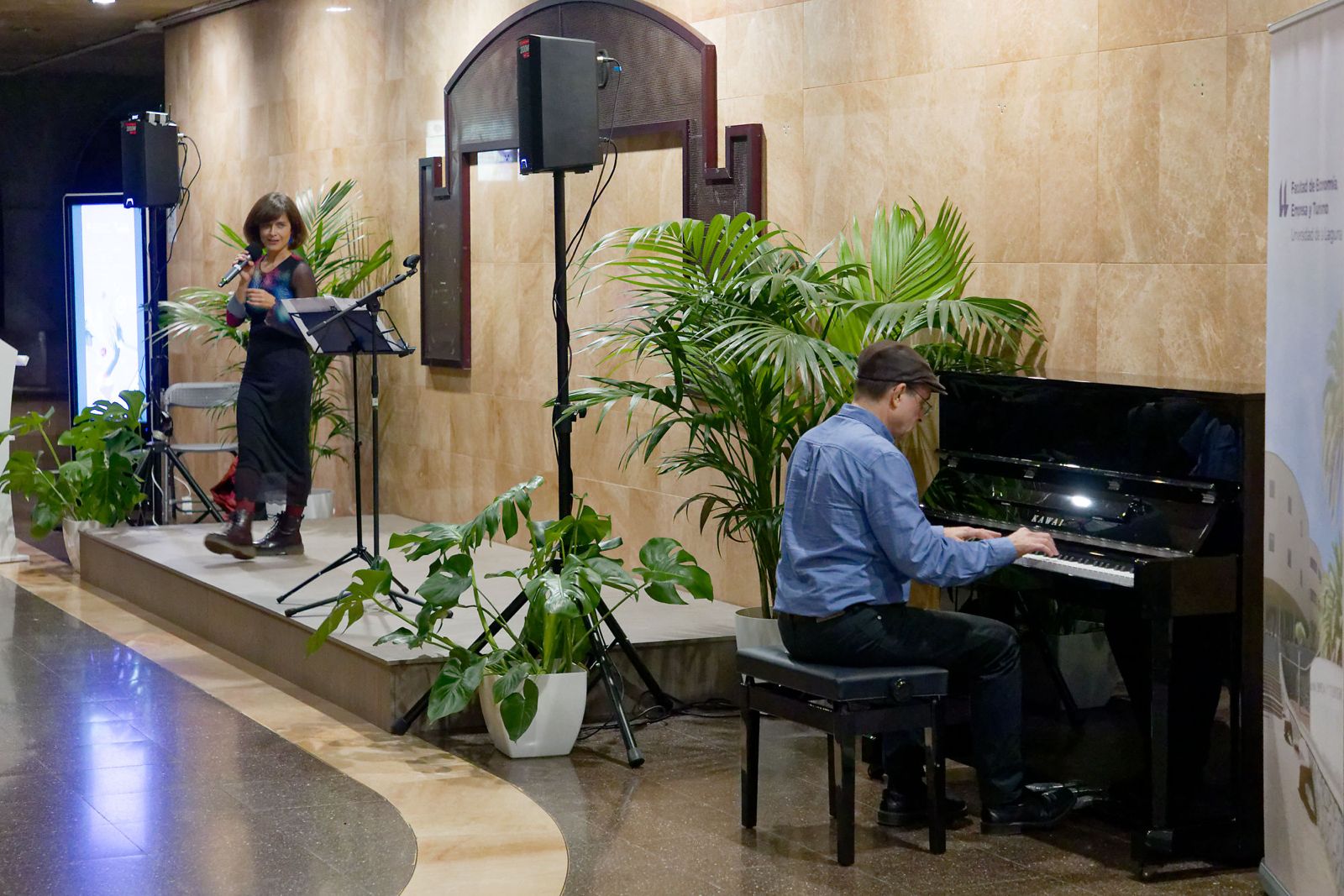 Ricardo Trujillo, profesor del departamento de Economía Aplicada y Métodos Cuantitativos, hizo de maestro de ceremonias de este entrañable acto que adornó con guiños teatrales. El evento contó con las intervenciones de Juan Carlos Martín Bello, profesor jubilado del Departamento de Dirección de Empresas e Historia Económica y Judit Mendoza Aguilar, profesora del Departamento de Economía, Contabilidad y Finanzas, quienes buscaron sorprender a los presentes emulando la esencia participativa que se pretende para el nuevo espacio, mezclando danza, piano y canto.