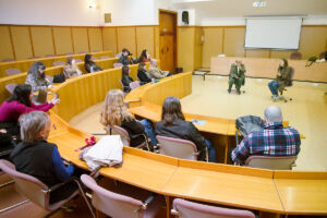 El acto se inició con una breve representación a cargo de Beatriz, integrante de la Agrupación Teatral de Filología, quien interpretó un fragmento del episodio de Marcela en Don Quijote de la Mancha. Esta intervención permitió introducir al público en el universo del personaje cervantino y evidenciar la potencia escénica de un texto que, siglos después de su escritura, continúa generando nuevas lecturas. La puesta en escena funcionó como una primera aproximación directa al material dramatúrgico y ayudó a establecer un puente entre el texto original y su reinterpretación contemporánea.