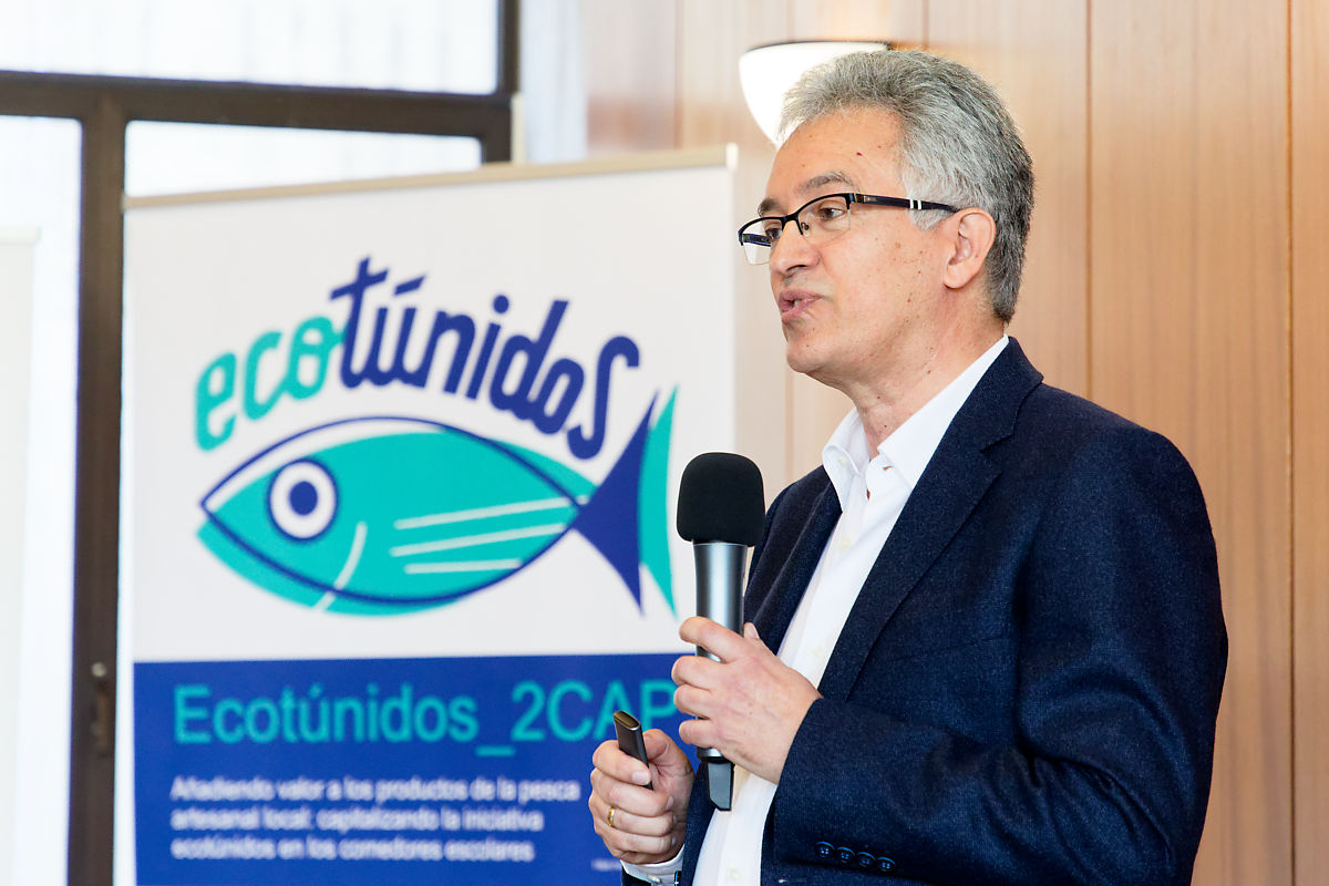 Durante la apertura de la jornada, el vicerrector de Investigación y Transferencia de la institución académica, Antonio Aparicio Juan, subrayó que la transferencia del conocimiento constituye una misión fundamental de la universidad, y valoró el trabajo del personal investigador de la institución por convertir los resultados científicos en “acciones reales de avance y mejora para la sociedad”. En este sentido, señaló que Ecotúnidos_2CAP es “un ejemplo inmejorable de transferencia del conocimiento”, y agradeció expresamente el impulso del investigador principal del proyecto, José Pascual Fernández, así como la implicación de las instituciones públicas asociadas, que permiten que la iniciativa llegue a sus destinatarios finales: los comedores escolares.