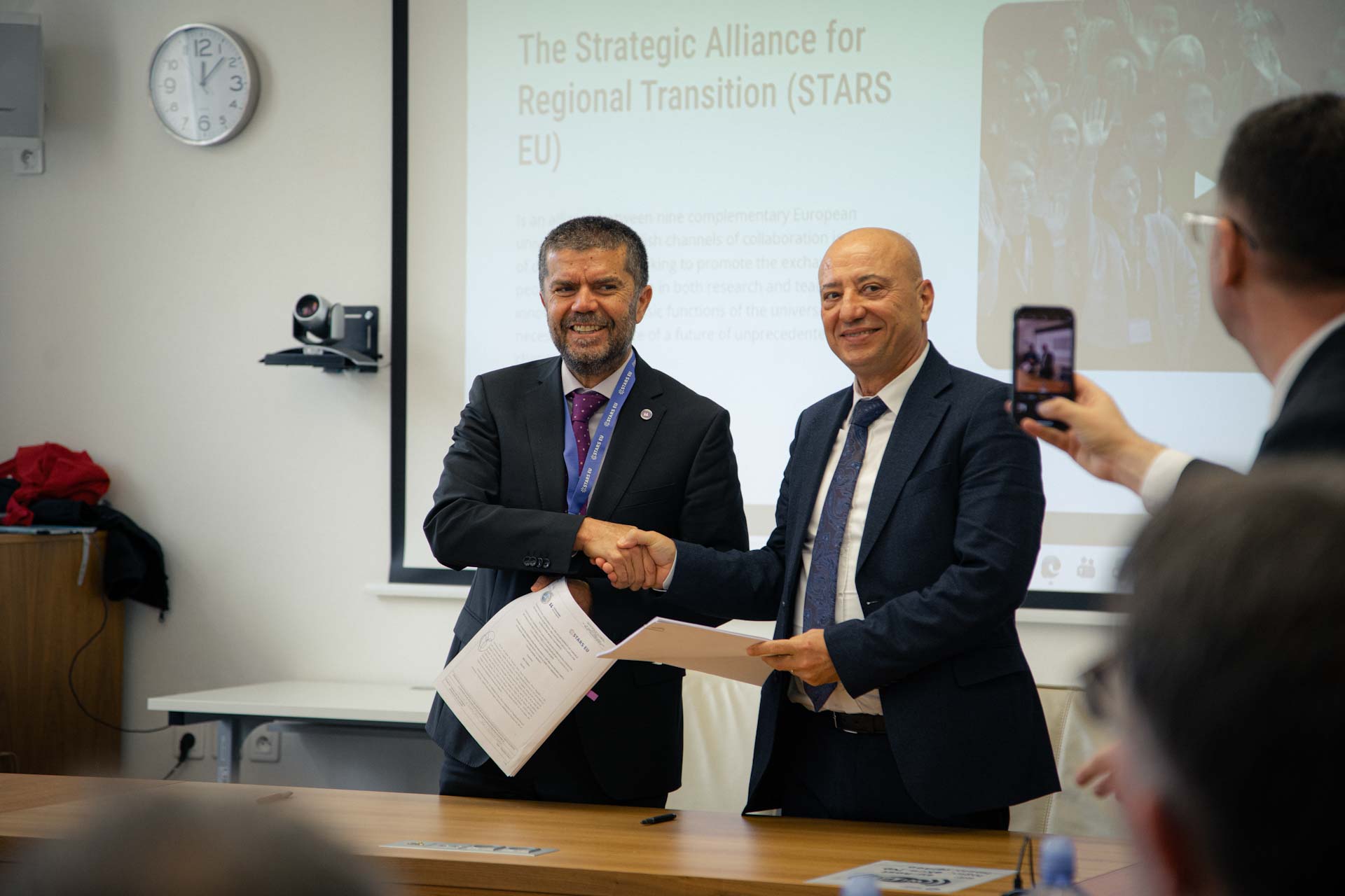 El acto de rúbrica se ha llevado a cabo esta misma mañana, tras la comisión de STARS EU, celebrada durante el transcurso de la segunda jornada de la Conferencia Anual de la alianza, que se está celebrando estos días en la Universidad de Silesia en Opava (República Checa), desde el 25 al 27 de marzo, bajo el lema “Educación transformadora para el futuro de Europa”. Durante la ceremonia también se firmó también el protocolo para poner en marcho el primer doble grado de la alianza, centrado en Gestión de Negocios Internacionales, que promueven el centro albanés y la Universidad Politécnica de Braganza (Portugal).