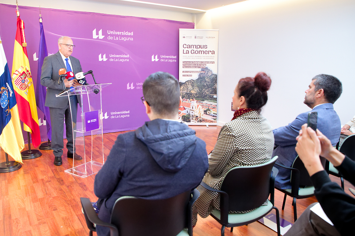 El Rectorado de la Universidad de La Laguna ha acogido hoy 15 de abril la presentación de Campus La Gomera, una iniciativa entre el centro docente y la corporación insular para profundizar en la relación académica entre las dos instituciones a través de la puesta en marcha de una decena de cursos que se celebrarán desde mayo hasta noviembre.