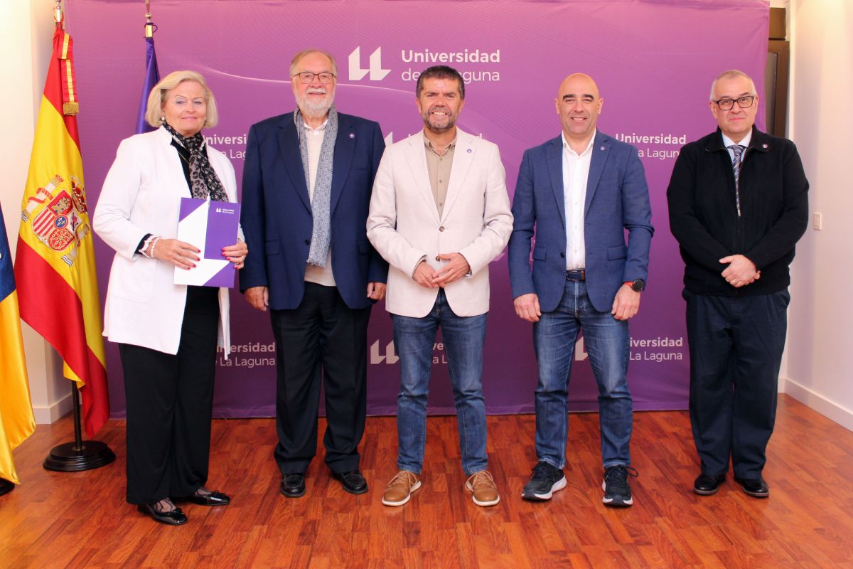 El rector de la Universidad de La Laguna, Francisco García, y el presidente de la Humboldt Cosmos Multiversity, Günter Koch, firmaron ayer, martes 7 de abril, un protocolo general de colaboración con una duración inicial de cinco años, mediante el cual manifiestan su interés mutuo en poner en marcha iniciativas comunes en el ámbito de la investigación, la docencia y la transferencia de conocimiento a la sociedad.