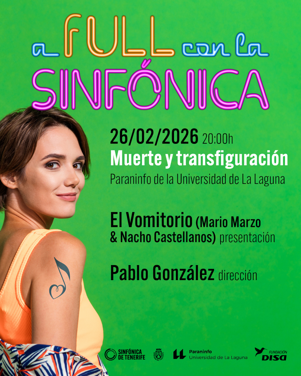 Mario Marzo –actor, pianista y podcaster ganador del Premio Ondas 2024– y Nacho Castellanos –contratenor y divulgador– son los artífices del podcast de divulgación musical El Vomitorio y serán los maestros de ceremonias de la nueva entrega de A fULL con la Sinfónica, que se celebrará el próximo jueves, 26 de febrero a las 20:00 horas en el Paraninfo de la Universidad de La Laguna. El programa está conformado por dos poemas sinfónicos de Ricard Strauss (“Don Juan” y “Muerte y transfiguración”) bajo la batuta del director principal invitado Pablo González, y las entradas están ya a la venta online, a un precio de 9 euros para público general y gratuito para estudiantes (que igualmente deberá realizar la reserva para controlar el aforo).