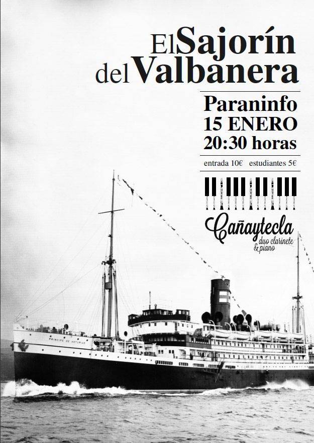 La agrupación camerística Cañaytecla actuarán mañana viernes 15 de enero, a las 20:30 horas, en el Paraninfo de la Universidad de La Laguna. El concierto que lleva por título “El Sajorín de Valbanera” es un homenaje a los emigrantes canarios que, buscando un futuro mejor, encontraron la muerte en el hundimiento del trasatlántico Valbanera en las costas cubanas en la década de los años 20.