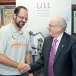 El rector de la Universidad de La Laguna, Eduardo Doménech, y el presidente del Club de Atletismo Tenerife CajaCanarias, Héctor…