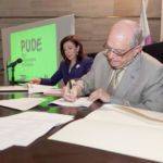 El rector de la Universidad de La Laguna, Eduardo Doménech, y la consejera de Empelo, Industria y Comercio del Gobierno…