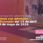 La Universidad de La Laguna ha abierto el plazo de admisión condicionada a másteres universitarios para el curso académico 2026/27,…