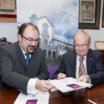 El rector de la Universidad de La Laguna, Eduardo Doménech, y el director general de Media Report SL, Joan Vinaixa,…