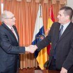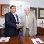 El rector de la Universidad de La Laguna, Eduardo Doménech, y el presidente de la Federación de Lucha Canaria, Germán…