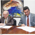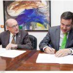 El rector de la Universidad de La Laguna, Eduardo Doménech, y el representante de la Fundación Canaria Correíllo La Palma,…