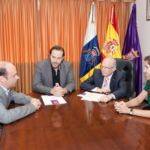 El rector de la Universidad de La Laguna, Eduardo Doménech, y los representantes de Las Chafiras SA, Victoria y Marcos…